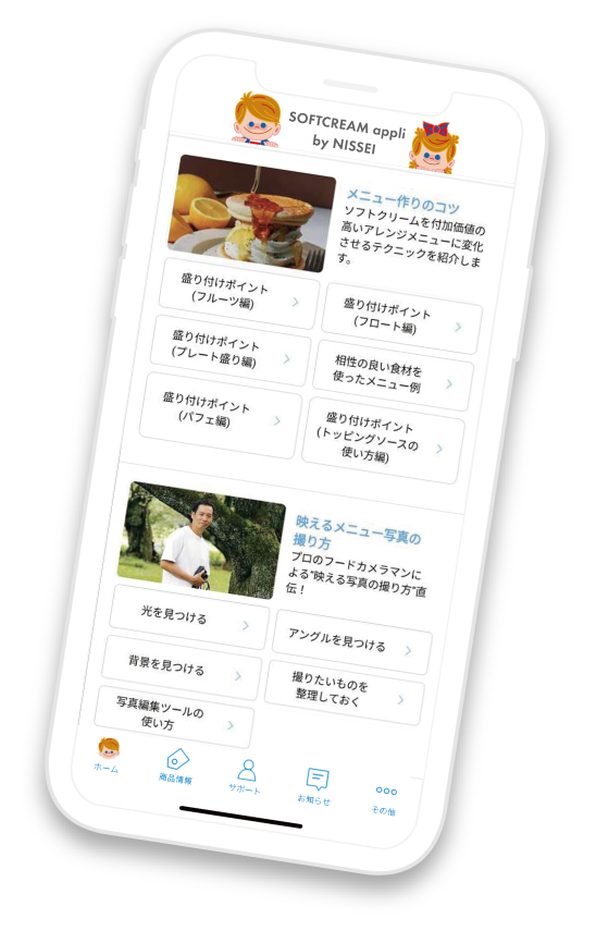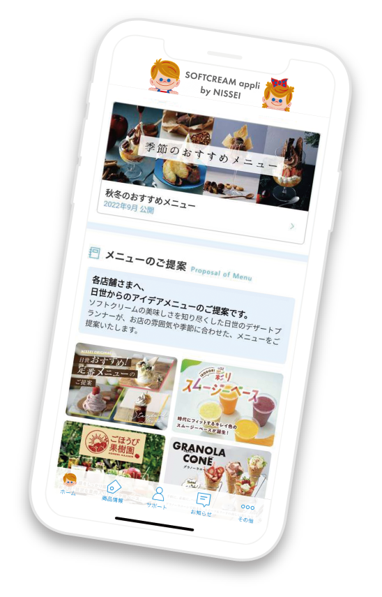 ソフトクリームの総合メーカー・NISSEIが運営する飲食店様向けの公式アプリ!
