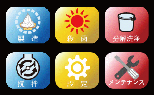液晶タッチパネル搭載でアイコン型スイッチを採用。イラスト入りのガイダンス表示で不慣れな方でも安心して操作できます。