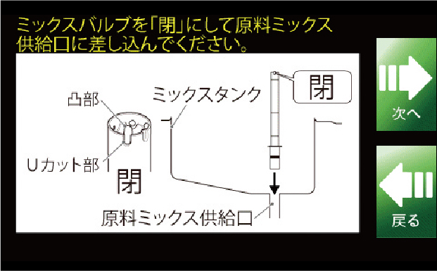 通常のシェーク(バニラ)の他に、シロップ選択ボタンを切り替えることで2種類のシロップをかく拌して提供することができます。