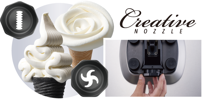 - ・個性的な形状のソフトクリームに盛れる「クリエイティブノズル」を標準装備。