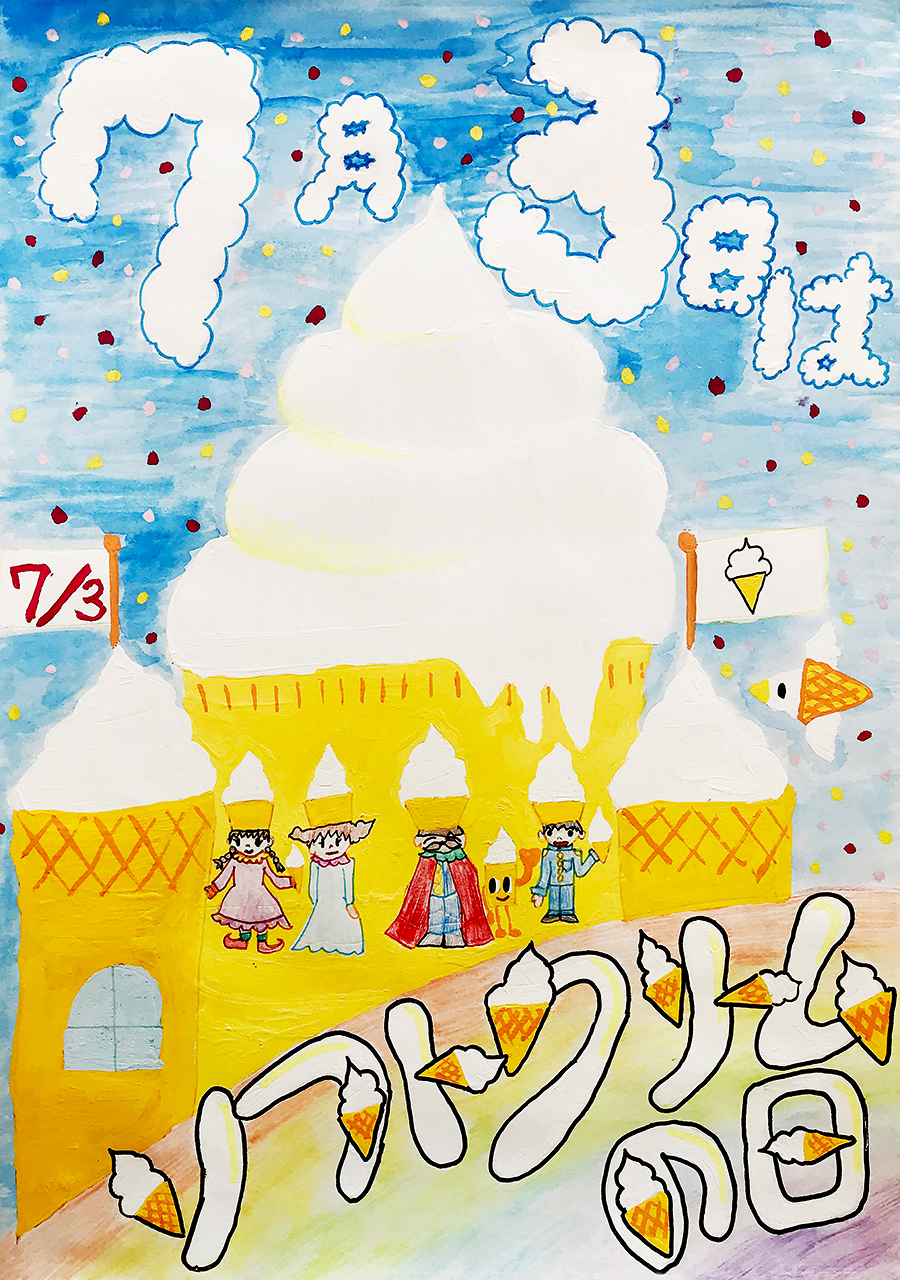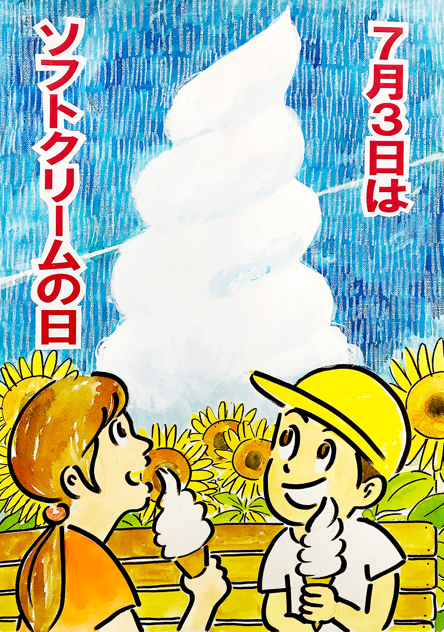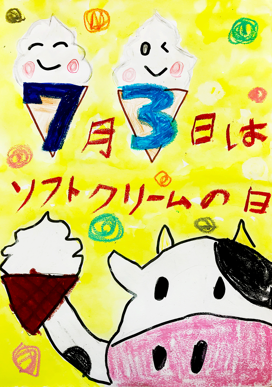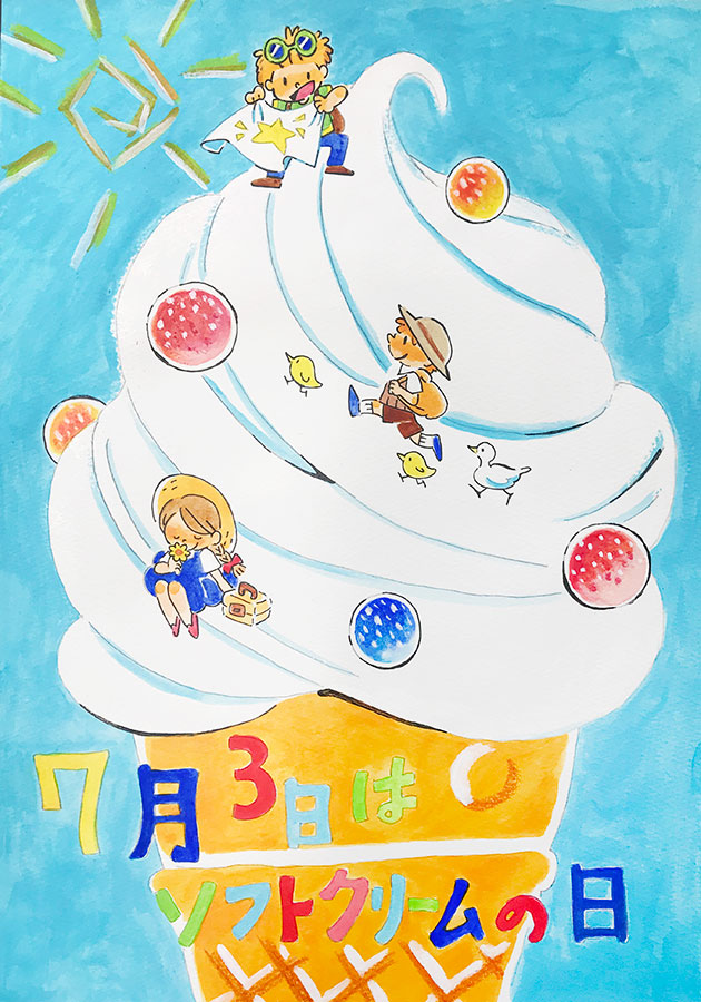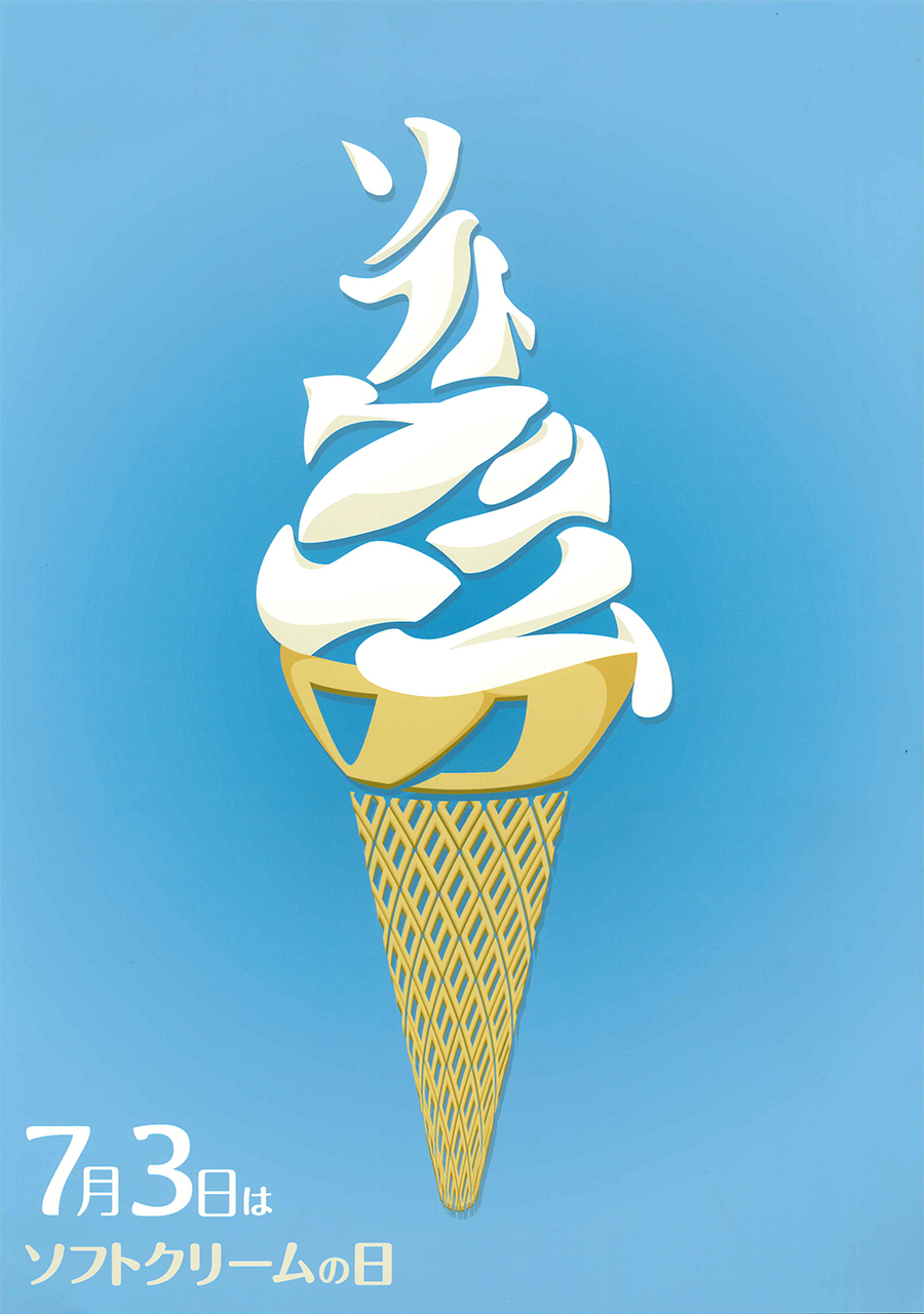 ポスター内に「7月3日はソフトクリームの日」の文字を入れ、ご自由にデザインしてください。 ※「7月3日」は「7/3」、「7がつ3にち」も可