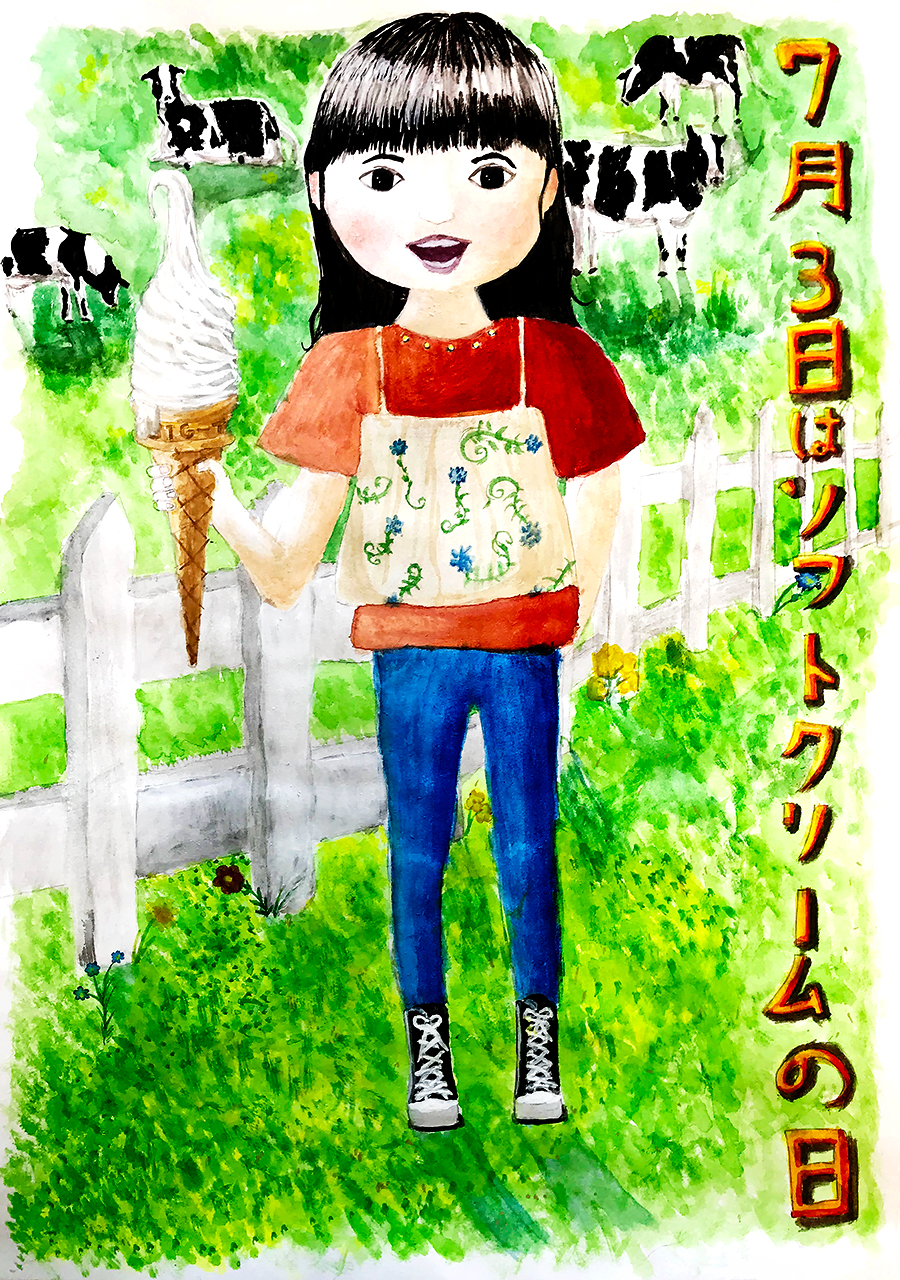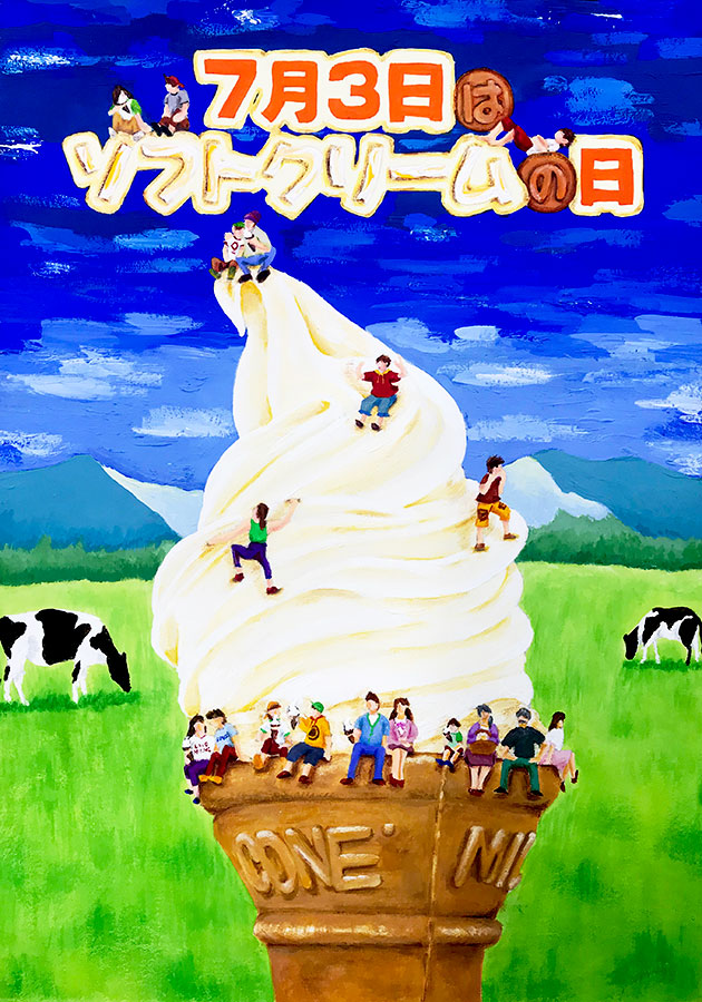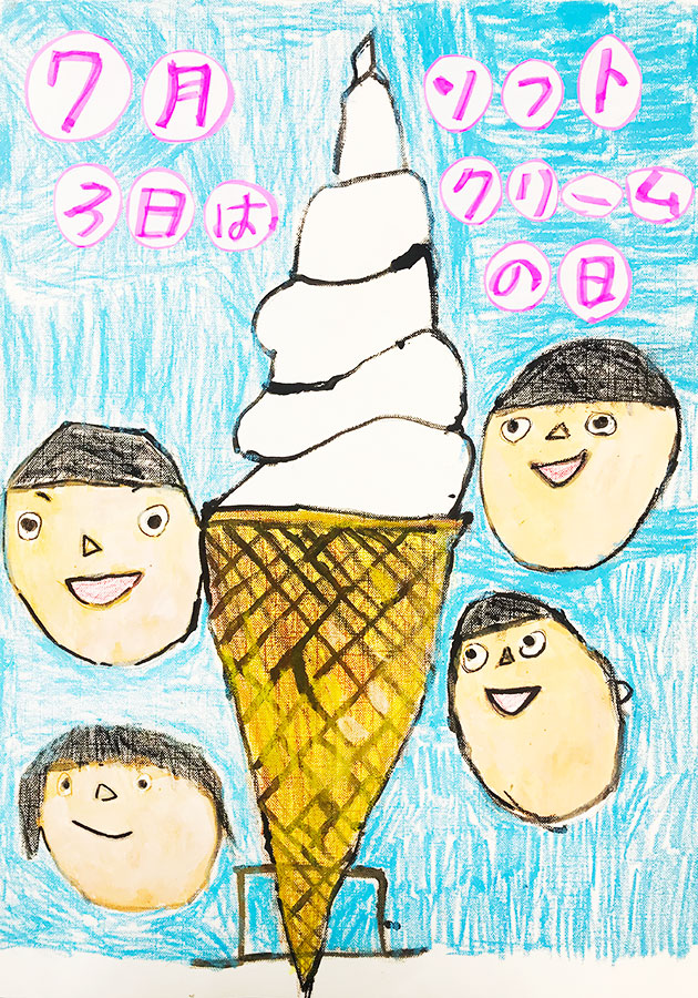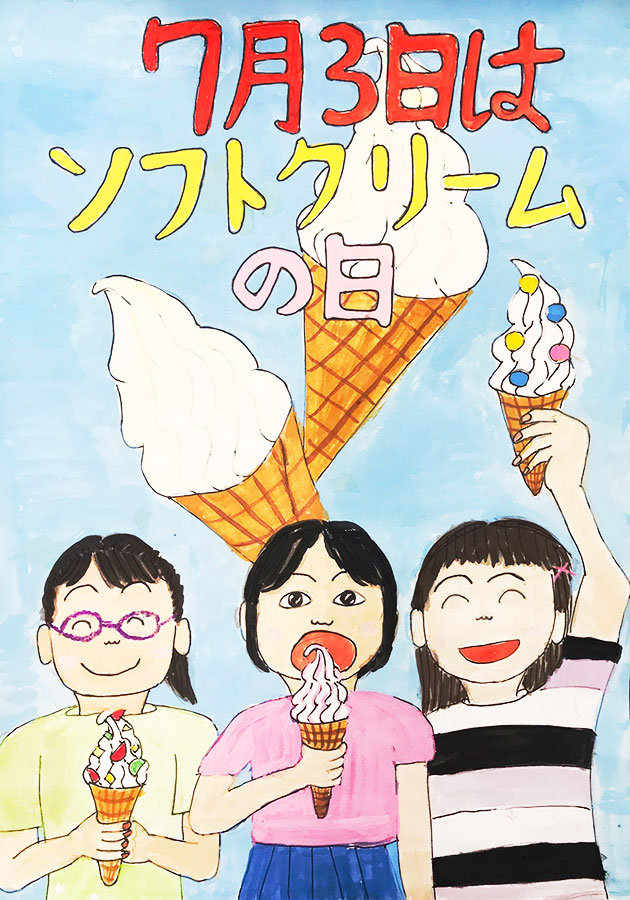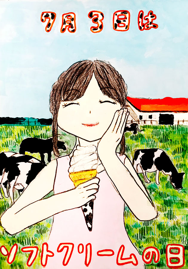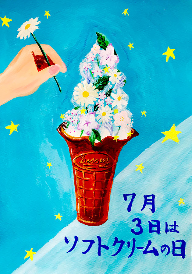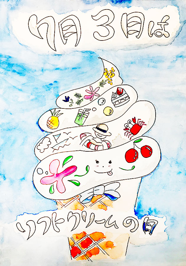 ポスター内に「7月3日はソフトクリームの日」の文字を入れ、ご自由にデザインしてください。 ※「7月3日」は「7/3」、「7がつ3にち」も可