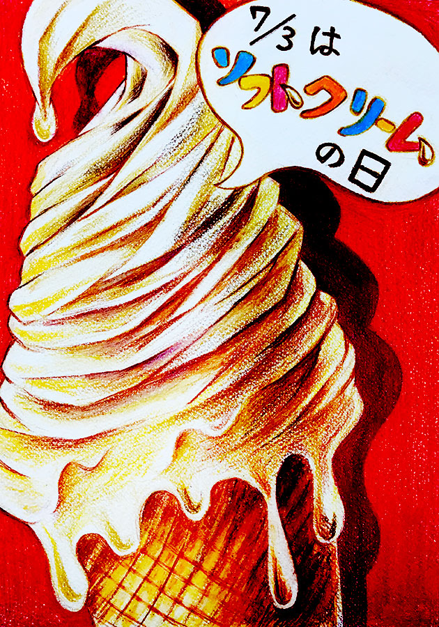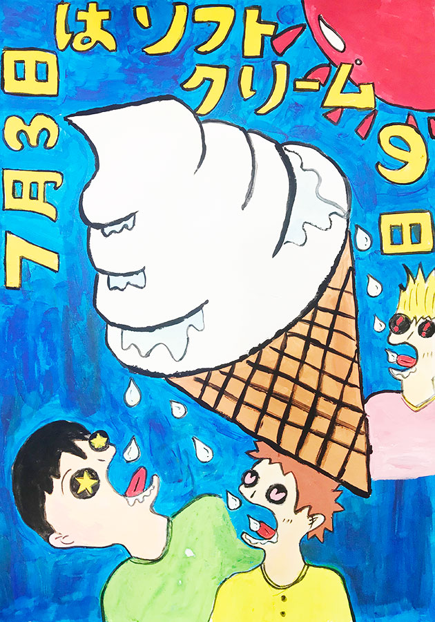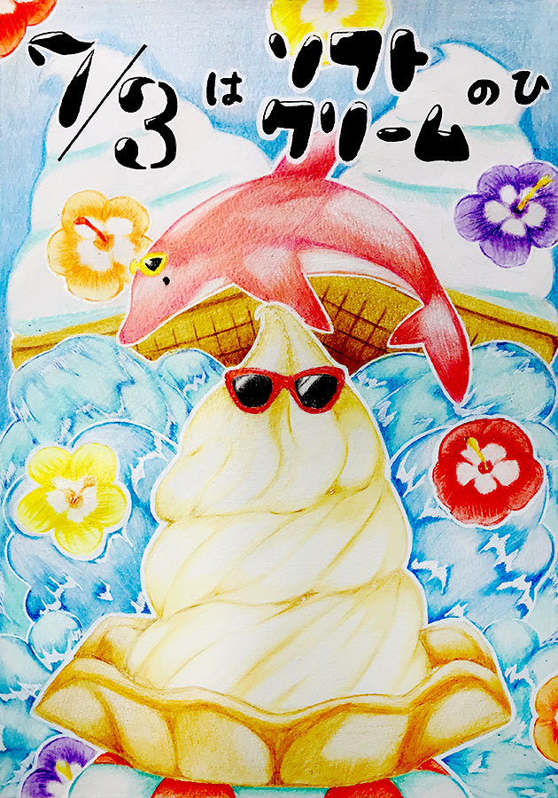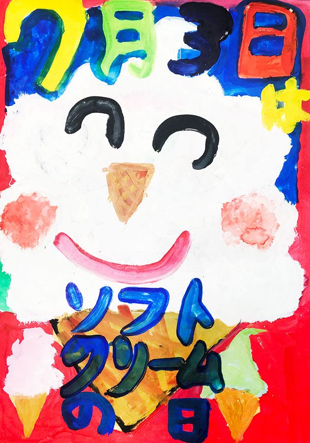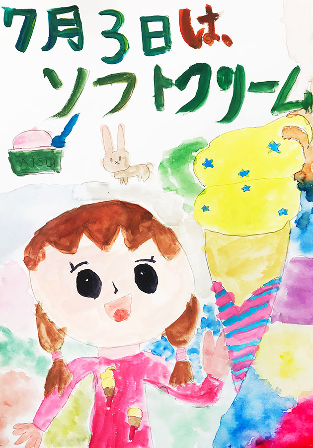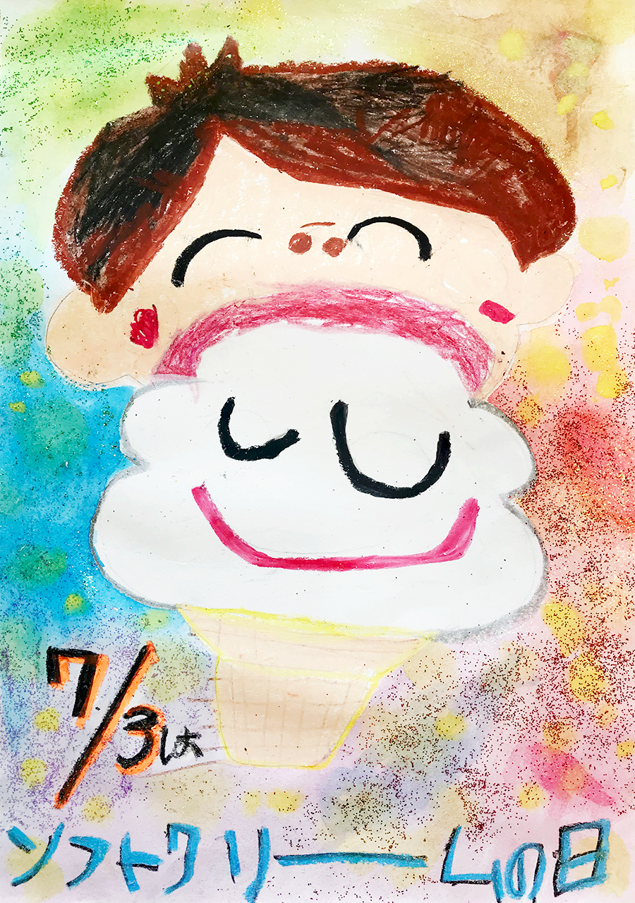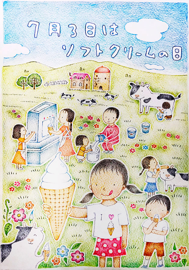 ポスター内に「7月3日はソフトクリームの日」の文字を入れ、ご自由にデザインしてください。 ※「7月3日」は「7/3」、「7がつ3にち」も可