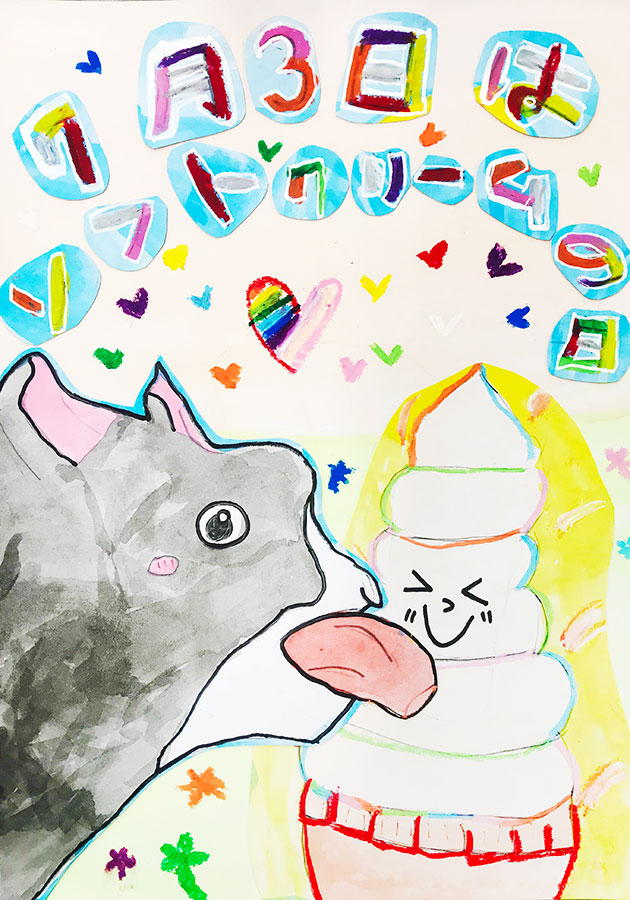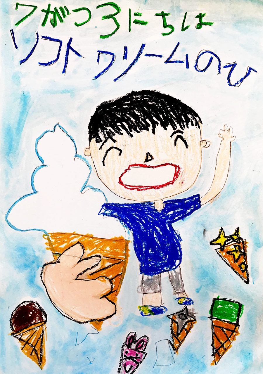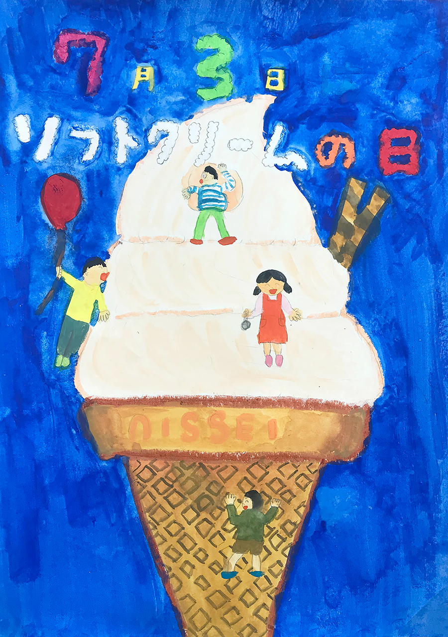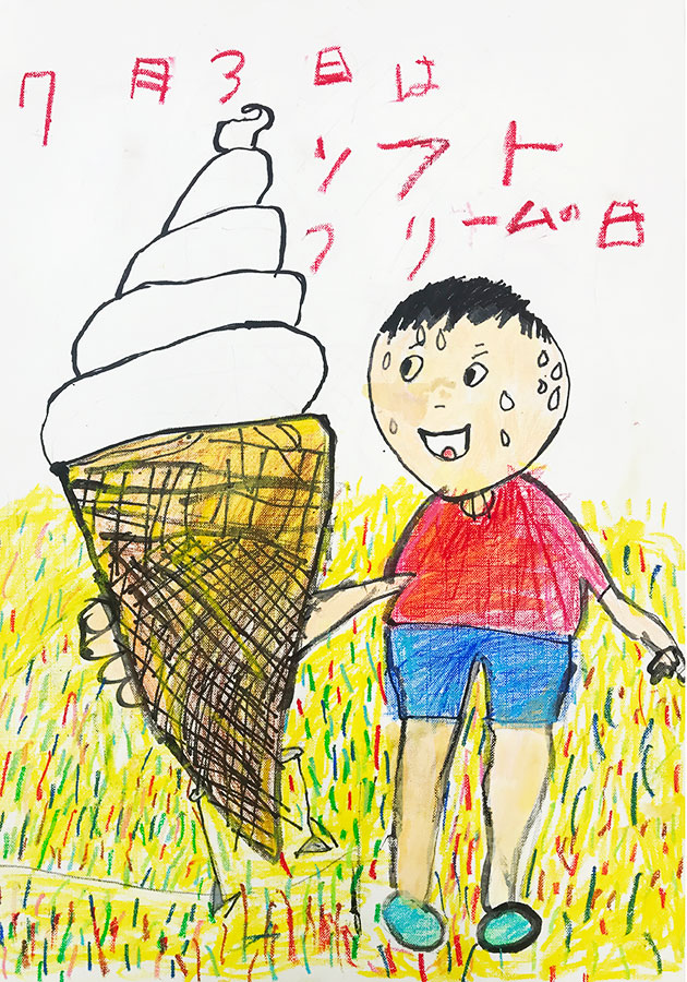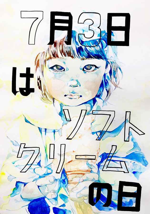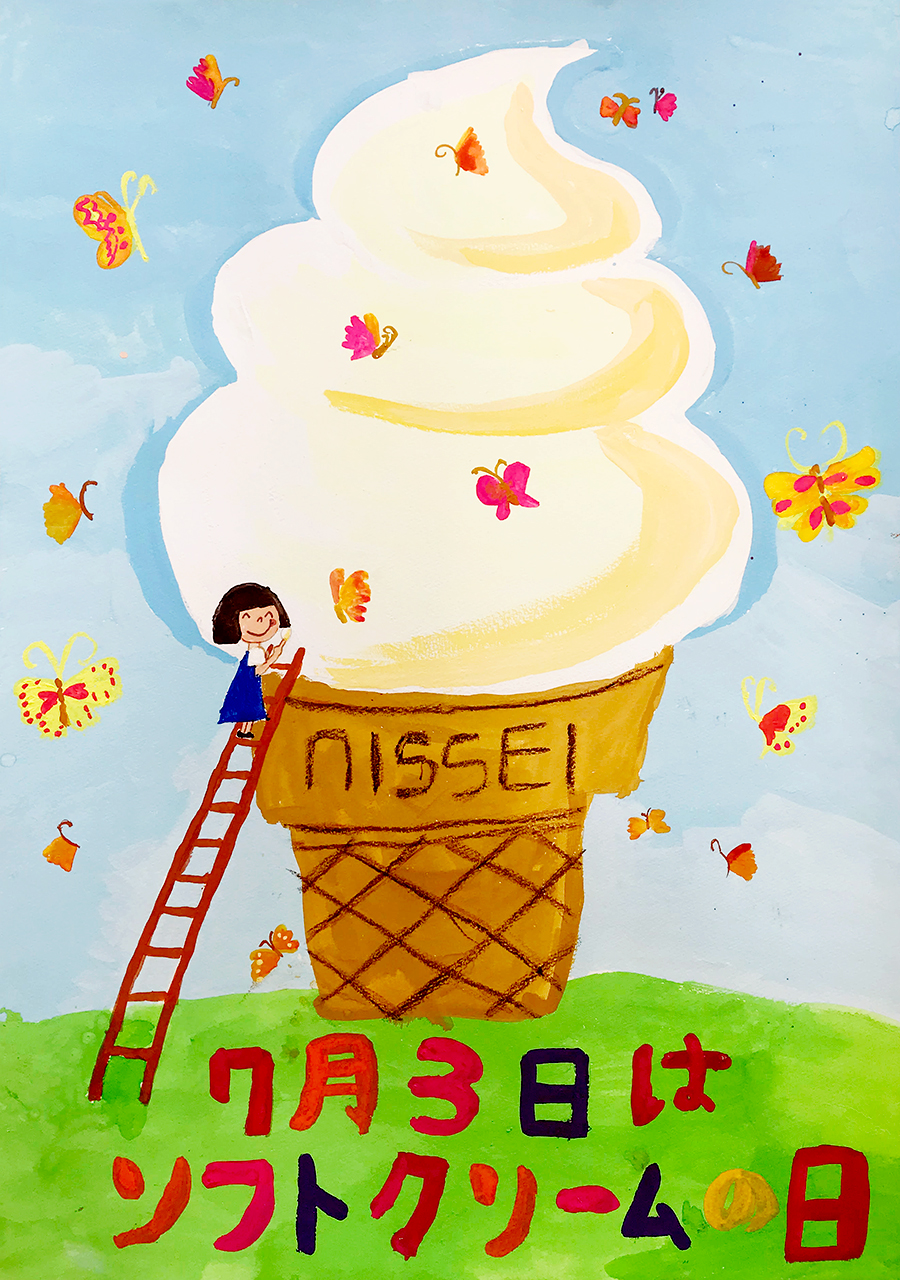 ポスター内に「7月3日はソフトクリームの日」の文字を入れ、ご自由にデザインしてください。 ※「7月3日」は「7/3」、「7がつ3にち」も可