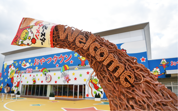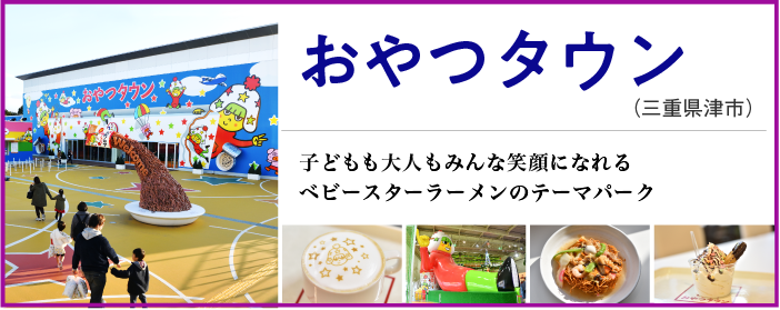 ベビースターラーメンの製造販売元である株式会社おやつカンパニーは三重県津市の郊外に本社と工場を構えています。おやつタウンがあるのはその隣接地。同社会長であり株式会社おやつタウンの社長でもある松田好旦(まつだ よしあき)さんが「ベビースターラーメンを愛してくださるみなさんに感謝の気持ちを込めて」そして「育ててくれた地元への恩返し」としてつくりあげた施設です。新しい形のレジャースポットというだけでなく、地域創成のモデルケースとしても注目を集めています。