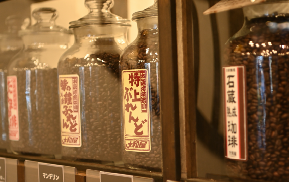 そして、「和の珈琲」を販売するだけでなく、「和の珈琲文化」まで創造しているところに大和屋の特色があります。昔ながらの古民家調のレトロな建物を模した高崎本店には、日本各地の窯元を訪ね歩いて買い付けた陶磁器1万点以上が陳列されていて、アンティークショップのような雰囲気が漂います。やきものを扱うのも創業当時からで、高崎本店店長の相島さんは「和の珈琲を和のうつわで楽しんでいただきたい」と言います。「ブラジル、コロンビア、モカ・・・世界から集められたコーヒー豆は、国や銘柄によって味わいが違います。同様に日本のやきものも、気候風土によってかたちや趣、デザインが異なります。好みに合ったコーヒーとお気に入りのカップを組み合わせれば、ご自宅で家族との豊かな時間が生まれます。大和屋は、そんなコーヒーのあるライフスタイルをもっと広げていきたいと考えています」。