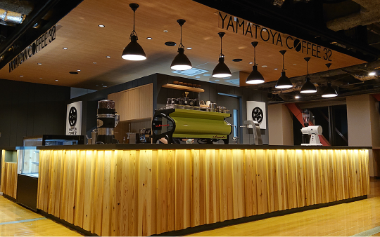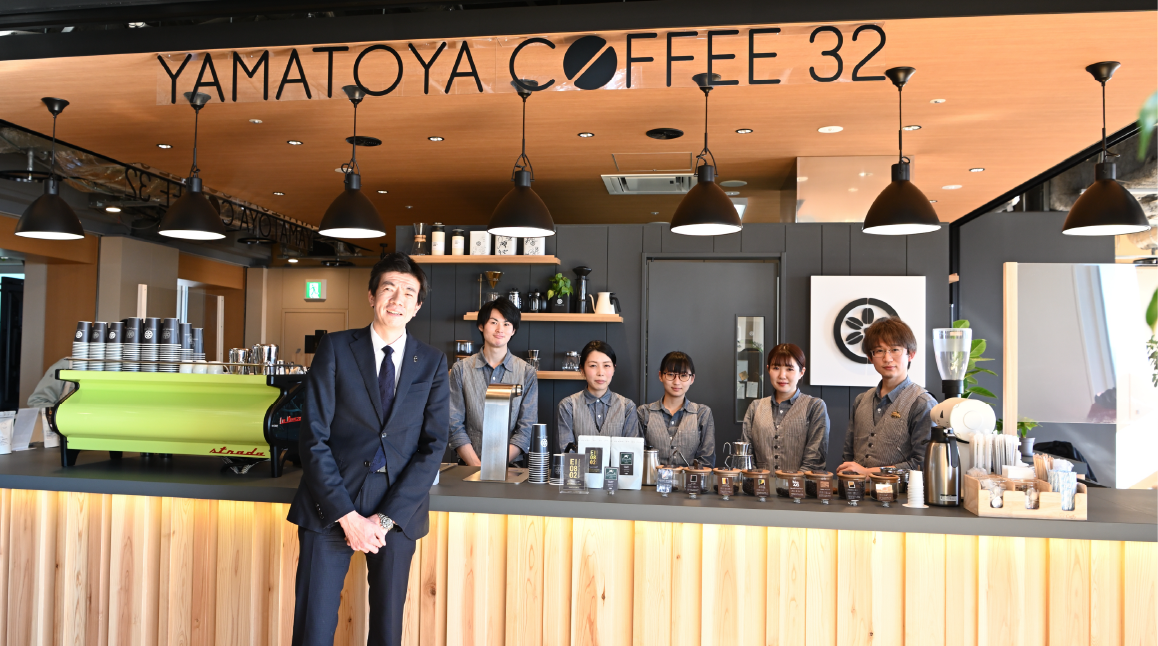 40周年の記念の年、大和屋では期せずして新しいチャレンジが始まりました。群馬県庁舎32階に新設されるカフェの公募型プロポーザルに応募、大和屋の事業計画が見事採用されたのです。店名は「YAMATOYA COFFEE 32」。これまで物販店舗がメインでカフェ業態は新しいチャレンジでしたが、本格的なコーヒーの味にこだわった大和屋らしい店づくりを展開。カウンターをステージと捉え、バリスタがオーダーされたコーヒーを一杯一杯淹れていく一連の所作をパフォーマンスとして“魅せる”ことで、コーヒーの付加価値を高めることをコンセプトにしています。