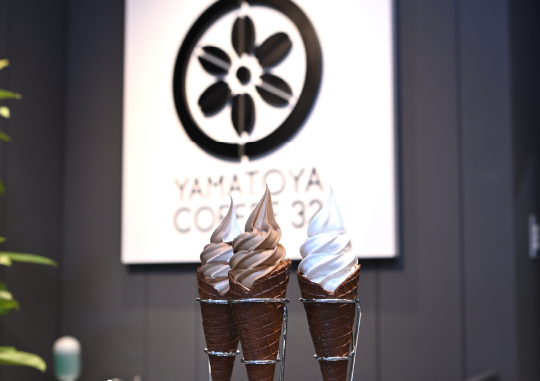 そんな大和屋様は、海外の産地まで足を運んでコーヒー生豆を買い付けるところから始まり、自社焙煎工場での品質管理、そしてグループ店での対面販売と、徹底してコーヒーの味わいにこだわっておられます。オリジナルの珈琲ソフトクリームの開発にしても、ソフトクリームをアレンジしたメニュー開発にしても、芯となるポリシーや目的が明確でブレがありません。確かな味覚と豊富な知識を持ったスタッフの方が多いのが大きな強みだと感じています。