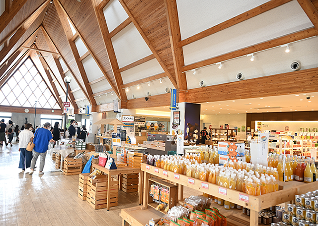 駅名に「北欧の風」とあるように、ここでは北欧をプチ旅行しているような気分が味わえます。ネイビーブルーのとんがり屋根とベンガラ色の外壁が印象的な駅舎は、まさしく北欧の建築様式を模したもの。とんがり屋根の中に入るとそこはコテージを思わせる開放的な空間で、両サイドにはマルシェのようにいろいろなお店が並びます。 なぜ北欧かというと、当別町とスウェーデンは親交が深く、北海道では当別町=スウェーデンというイメージが定着しているからです。気候・風土・景観が似ていることから始まった関係は、北欧型建築が立ち並ぶ住宅地スウェーデンヒルズの実現につながり、スウェーデン王国レクサンド市との姉妹都市提携へと発展しました。町をあげての交流イベントも盛んで、道の駅でも春になると北欧フェアが開催され、賑わっているそうです。