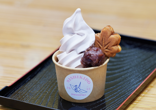 ソフトクリーム事業は今後も発展させていく考えで、「にしき堂の新しい顔として販売店舗を増やしていく方針」(井上さん)があるそうです。その際、生もみじの餡を使ったこしあんソフトは共通にして、もうひとつは「店舗ごとに地域の特性を活かした限定ソフトを開発していきたい」と伊藤さん。持ち帰って楽しむおみやげではなく、広島の現地でしか食べられない新名物として、みなさん、ソフトクリームに大きな可能性を感じておられるようでした。
