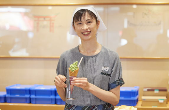 一緒にソフトを開発して強く感じたのは、社員のみなさんに浸透している『百試千改』の姿勢です。もっと美味しくできないかを常に考えておられ、そのためには何ができるかを追求し、好奇心を持って試作を繰り返す。だからこそ、これまでにない味わいのこしあんソフトが生まれ、抹茶あんソフトや白あんソフトが形になったのだと思います。販売員の方もベストな状態でソフトクリームを提供できるようにと気を配っておられます。