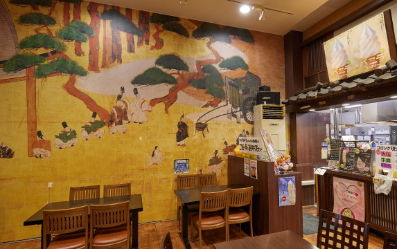奈良時代、現在の高岡市には越中国の国府が置かれ、約1300年前に編纂された日本最古の歌集「万葉集」の代表的歌人である大伴家持が国守として赴任しました。万葉集に収められた473首のうち、実に223首もの歌が5年間の越中国在任中に詠われたものです。そのことから、高岡市は“万葉の里”と呼ばれており、そこに立つ道の駅も「道の駅 万葉の里 高岡」と名付けられました。館内フードコートの壁面には万葉の絵が描かれ、敷地からは万葉集にも詠まれた二上山を遠くに望むことができます。