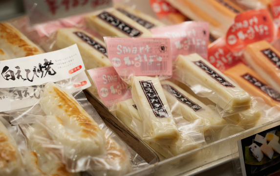駅舎内の特産品コーナーには2000点をゆうに超える富山名物がズラリ。富山湾でとれた海産物の加工品、富山銘菓、氷見うどんなどの食品のほか、高岡銅器といった伝統的工芸品も並びます。富山県内の道の駅では最大級の品ぞろえを誇り、富山のおみやげ探しはここで完結するといわれるほど。