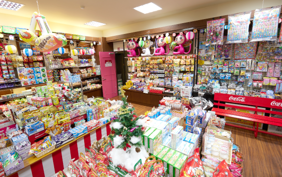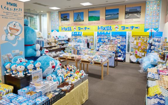 一角には、高岡市出身の藤子・F・不二雄氏にちなんだ「ドラえもんコーナー」もあり、ぬいぐるみからマグカップ、クッキーなどの食品まで多彩にラインナップ。ファンならずとも手にしたいアイテムがそろいます。また、2023年7月には「駄菓子コーナー」を新設。大人はどこか懐かしく、子どもはワクワクする空間です。ドラえもんコーナー、駄菓子コーナーを合わせると、品数は4000点近くになるそうです。親子の会話も弾み、子どもから大人まで楽しめる、地域の憩いの場になっています。
