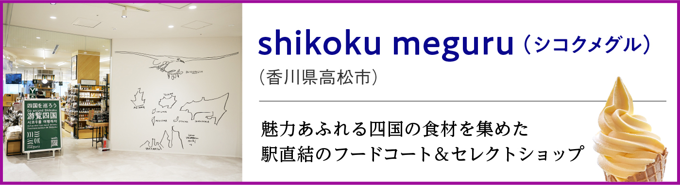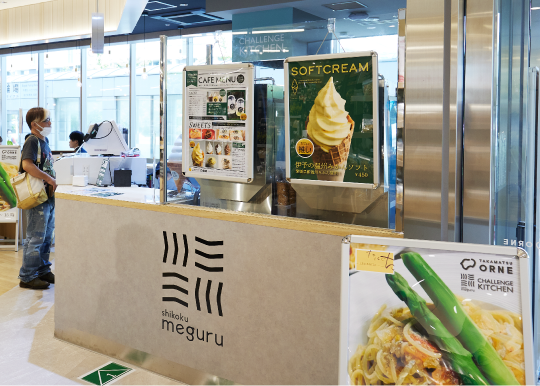交通アクセスに優れた立地から、四国観光の拠点となっている香川県高松市。ターミナル駅であるJR高松駅のすぐ近くには高松港があり、瀬戸内海の島々へと渡るための「海の玄関口」としても親しまれています。近年、高松駅周辺の大規模開発が進む中、2024年3月にはJR四国ステーション開発株式会社が駅直結の商業施設 「TAKAMATSU ORNE(タカマツ オルネ)」を開業。北館1階には、直営店舗としてフードコート&食品のセレクトショップ 「shikoku meguru(シコクメグル)」がオープンし、人気を集めています。