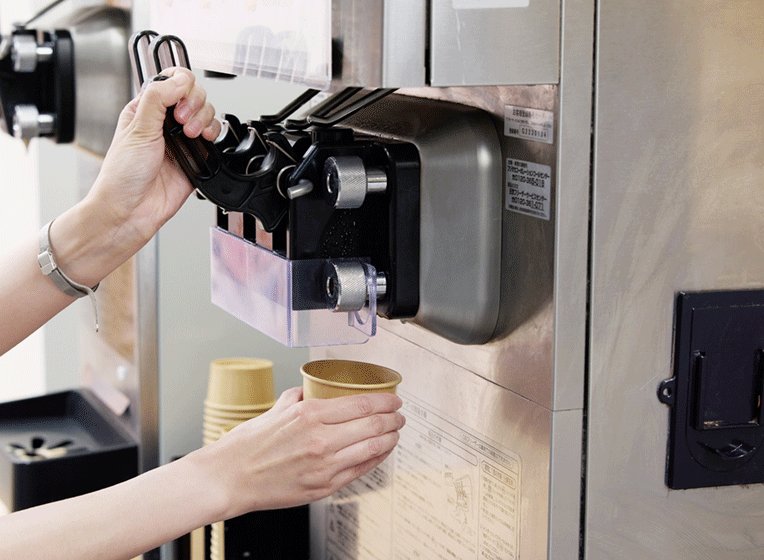 DiCE様にデモンストレーションという形でご協力いただいている「クリエイティブノズル」は、さまざまな形状のソフトクリームを提供できるオプション部品で、弊社としても新しい取り組みです。弊社から「こんな巻き方はどうですか」「この色とこのノズルの相性が良いですよ」といった提案を積極的にさせていただいて、味だけでなく見ためや巻く楽しさも含め、もっと多くのお客さまに提供していけたらと考えています。今後も引き続き、「ソフトクリームに本気すぎるネットカフェ」のDiCE様と活発に意見交換をしながら、双方でソフトクリームを盛り上げていきたいです。