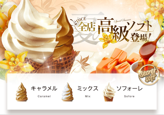数ある飲食メニューの中で、ソフトクリームはどのような位置づけなのでしょうか。そう尋ねると、エリアマネージャーの漆原さんは「DiCEは『ソフトクリームに本気すぎるネットカフェ』を謳っているほど、ソフトクリームに力を注いでいます。DiCEと言えばソフトクリームだと、お客さまにも認知していただいていますね」と笑顔で答えます。これまでに提供してきたソフトクリームの種類は、なんと120種以上。DiCEの本気度が伝わってきます。「特に反響が大きいのは、NISSEIさんの最高峰のバニラソフト『ソフォーレ』。提供日には“ソフ活”をしているお客さまで店内が溢れかえる盛況ぶりです」。