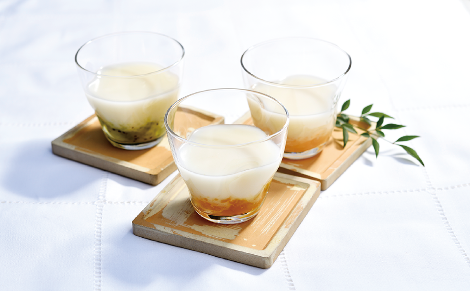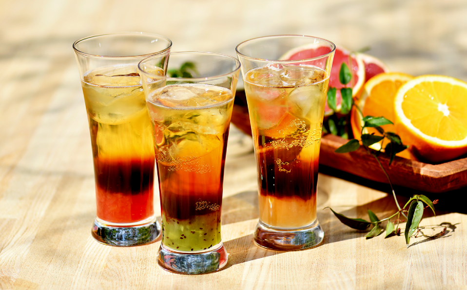 レイヤードドリンク。果肉入りベースは比重が大きいため、