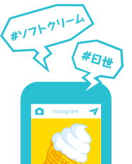 ハッシュタグ「#ソフトクリーム」「#日世」をつけて投稿してください。