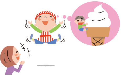アクティビティ中に突然しゃがみ、両手を挙げジャンプをした男の子。話を聞くと、「これくらい大きなソフトクリームを作りたいの!」という表現でした。その後も、体をクネクネさせてソフトクリームになりきっていたり、食べるのが待ちきれない様子でした。その姿を見て、保護者も大笑い。ソフトクリームが大好きな様子がとても伝わって来ました。