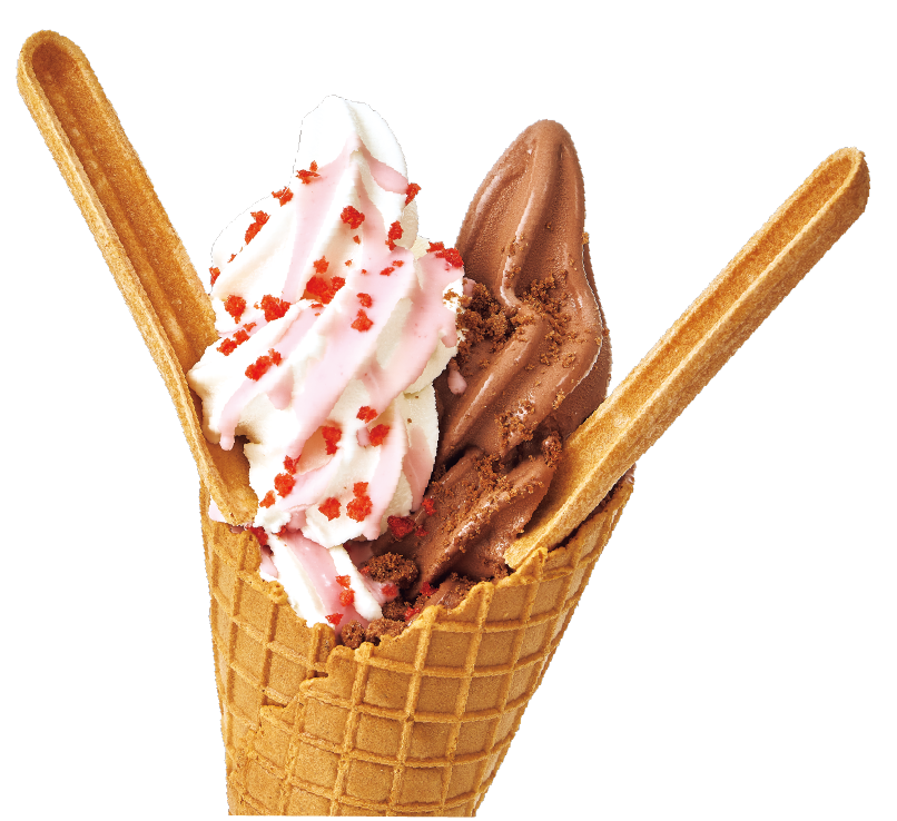 コーンやトッピング商材をはじめ、ソフトクリームやフリーザーの商品情報や