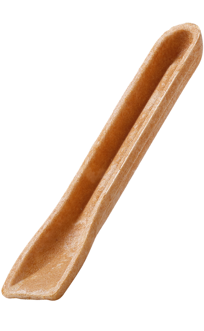 コーンカップ素材でできた、食べられるスプーン。
