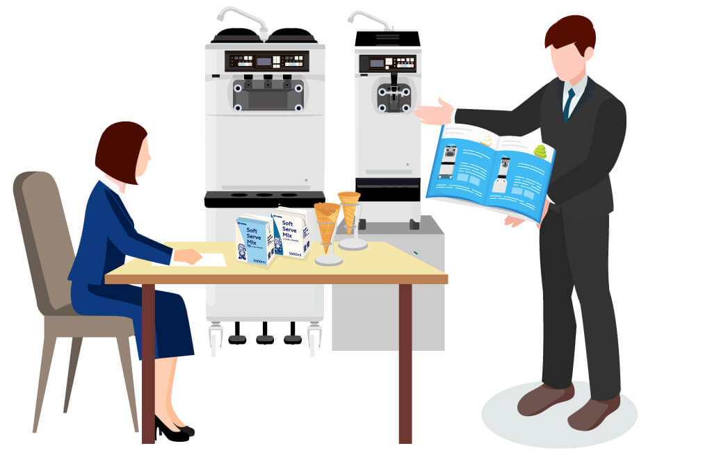 また、各営業拠点に完備したテストキッチンでは、実際にソフトミックスやコーンカップを使用したプレゼンテーションも行います。