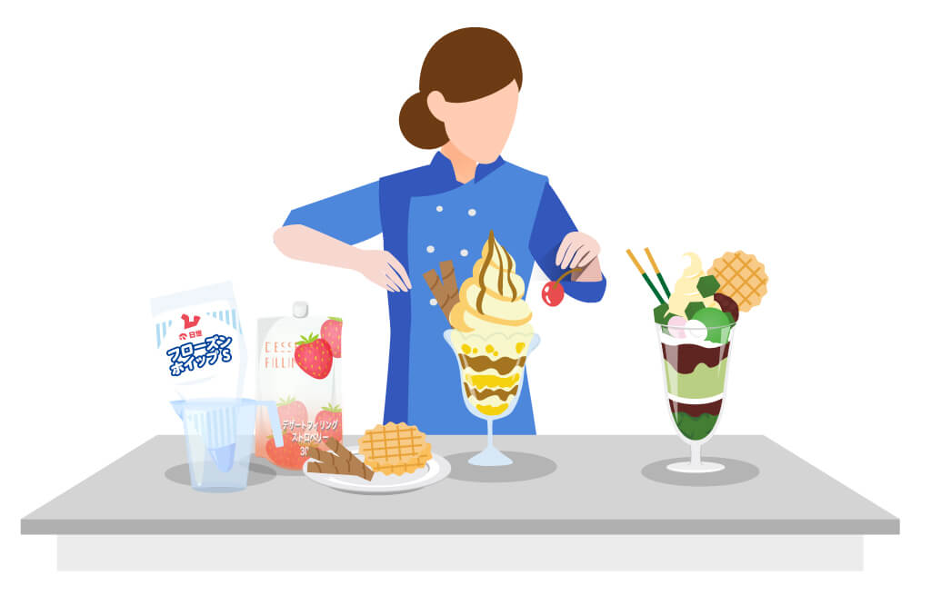 ソフトクリームの専門家として、ソフトクリームの美味しさを知り尽くした日世のデザートプランナーが最新のトレンドや季節感を取り入れたスイーツメニューをご提案。より味わい深く、よりふくよかで、豊かな時間を過ごせるメニューの数々。