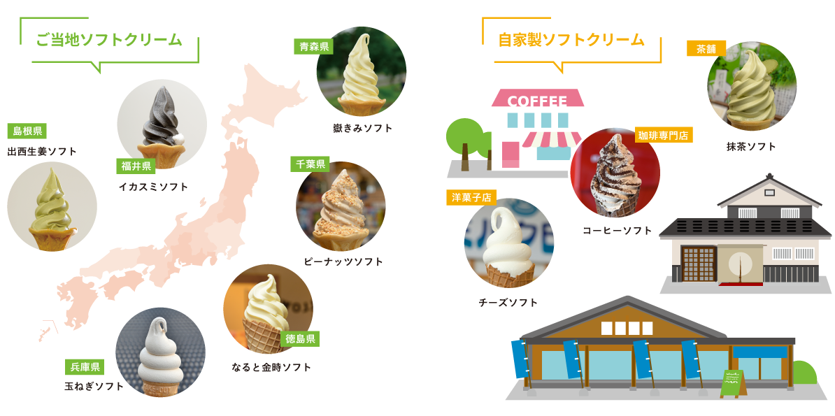 ご当地&自家製ソフトクリームで表現。