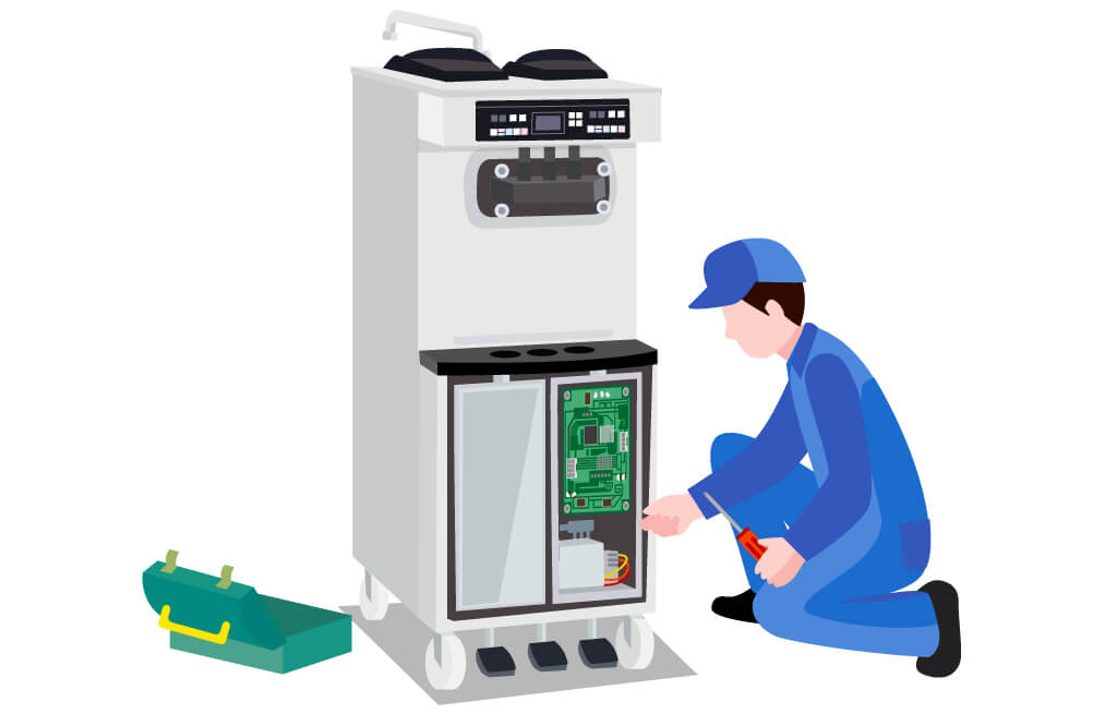 常に優れた品質のソフトクリームを販売するためには、フリーザーの信頼性は重要なポイントです。日世のフリーザーは高い耐久性と容易なメンテナンス性で、お客様でも安心して取り扱える構造になっています。また、NISSEIでは万一のマシントラブルにも素早くリカバリーできるネットワークを構築。安心と信頼のサポート体制で対応いたします。