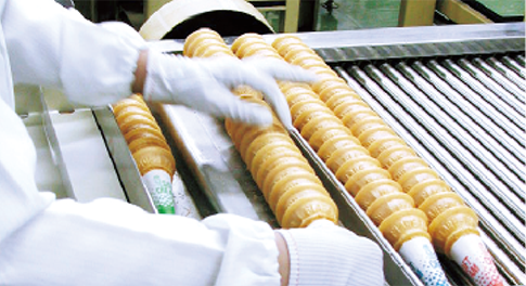 NISSEIでは、安心・安全で高品質な商品を安定して供給できる生産体制を構築。例えば、全長十数メートルのオーブンなど様々な設備を必要とするコーンの生産についても、国内外の最新鋭機を導入し、効率的な生産を実現した工場を稼働。高品質の製品を安定的に大量供給できる体制を整えています。