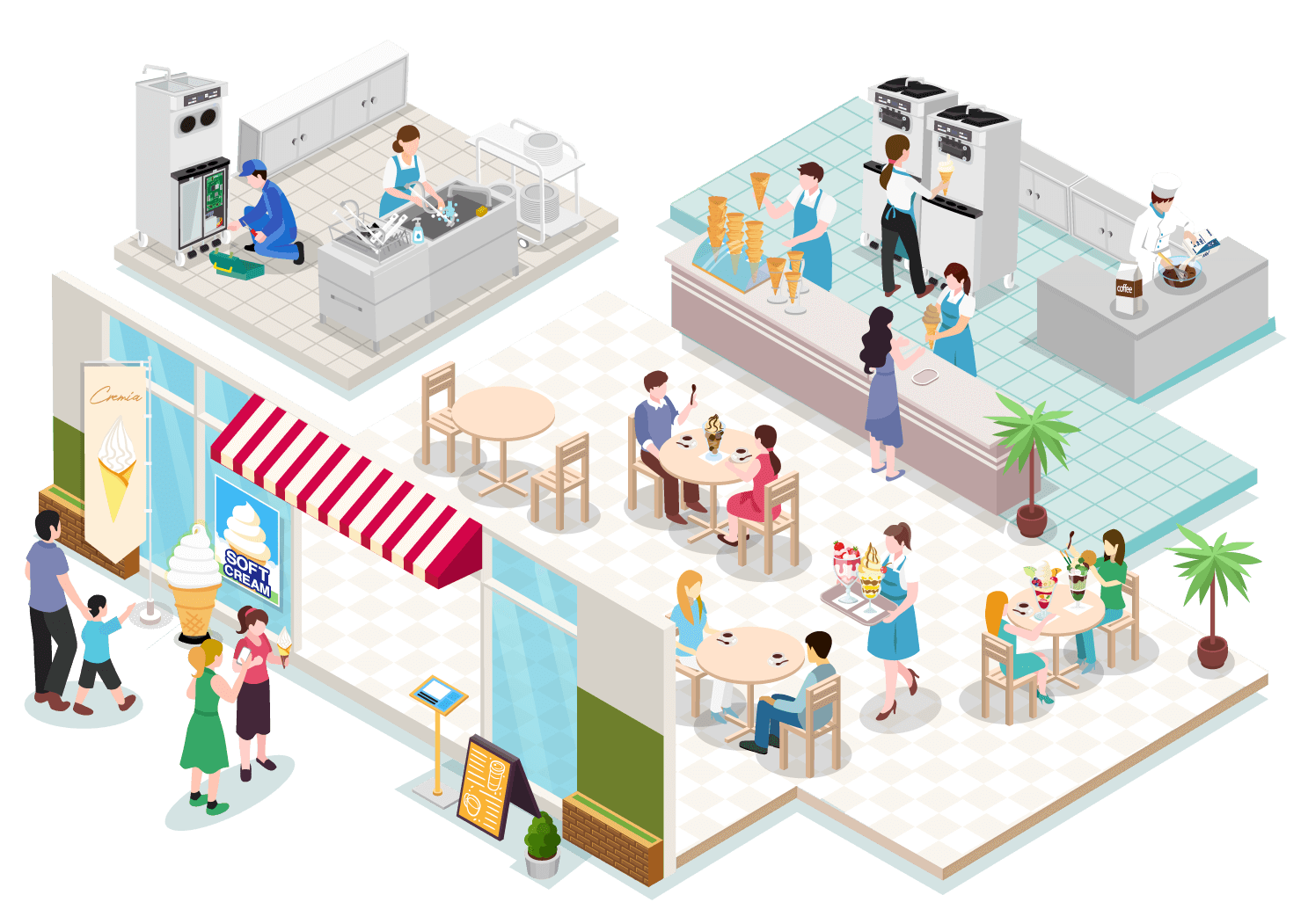 フリーザー、コーン、ソフトミックス、トッピングの全てを自社で生産。