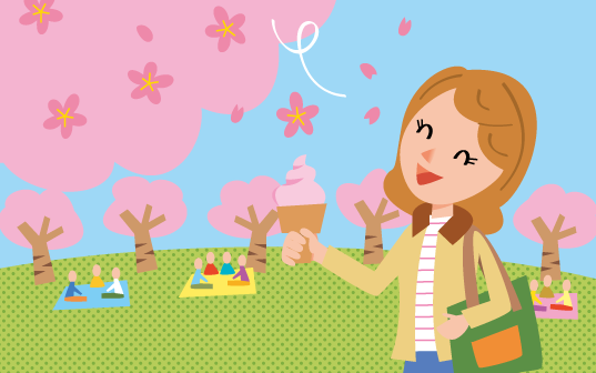お花見です。紅葉と気温はさほど変わらない日もありますが、春という気分を桜が盛り上げてくれて、ピンク色という色がまたふわふわワクワクさせてくれます。桜のソフトクリームも出すお店が多く、花の塩漬けとよく合います。(デコ広子 さん/京都府)
