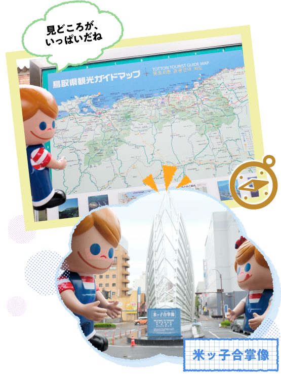ニックンとセイチャンは鳥取県・米子市に到着しました。米子駅から旅が始まります。