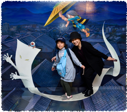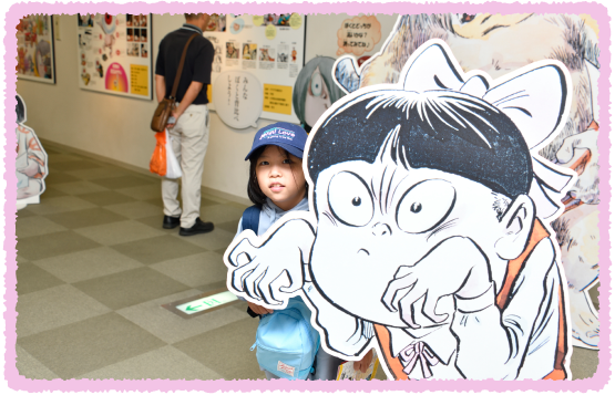 さよちゃんは「水木しげる文庫」で妖怪板はがき作りにトライ!