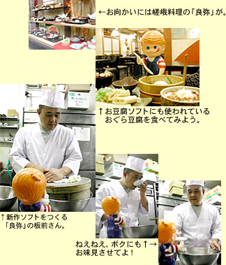 えっ、「サガパー」の創作ソフトは板前さんが考えてるの!? それじゃ、やっぱりお料理も食べなくっちゃね。嵯峨名物のお豆腐料理に舌鼓。