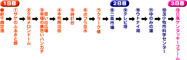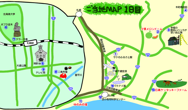 ※下の [1日目] [2日目] [3日目] ボタンをクリックしたら、ご当地旅日記が見られるよ!