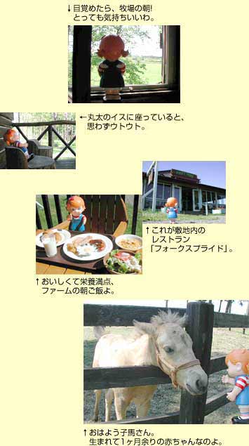 牧場の朝はとても気持ちいい。緑の中をかける馬を眺めながらぼんやり。こんな一時も牧場ならではの過ごし方ね。