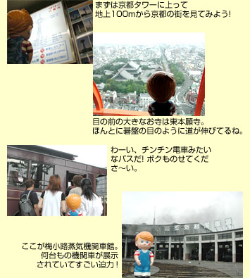 すぐ目の前の京都タワーから街のようすを見てみようっと。さて、なにが見えるかな。