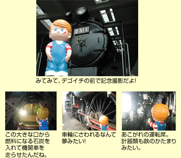 バスにのって、かつて蒸気機関車の基地だった梅小路機関区にある博物館に。あこがれの蒸気機関車にさわれるぞ!