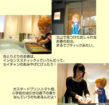 北山といえばおしゃれなお店が集まるエリア。こんな街で京みやげを探すのも楽しそう。そうだ、セイチャンが喜びそうなとっておきのおみやげを見つけようっと!