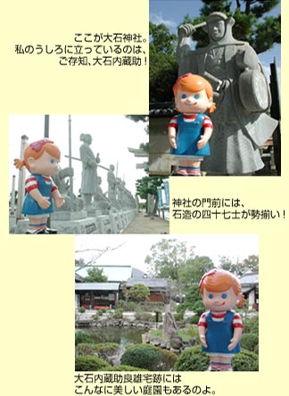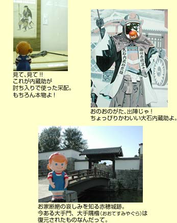 やってきました、忠臣蔵でおなじみの赤穂の町よ。町中に赤穂浪士にまつわる史跡がいっぱい! どれから見ようか迷っちゃうわ。