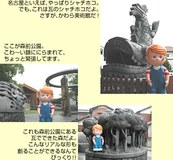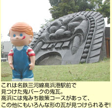 高浜といえば、矢作川が運んだ三河粘土を使ったやきもので知られる街。とくに三州瓦の生産は有名で、街のあちらこちらには瓦を使ったモニュメントややきものにちなんだ公園があって、素敵な散策を楽しむことができるんだよ。