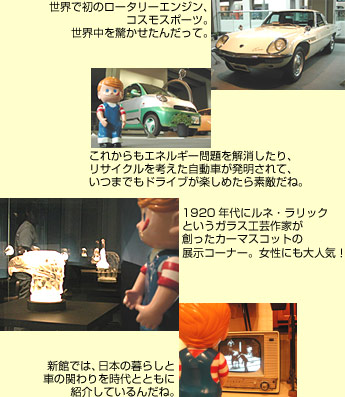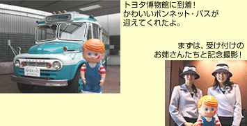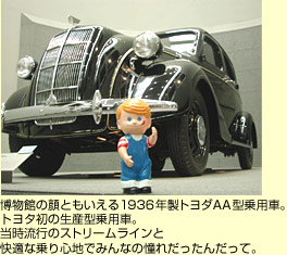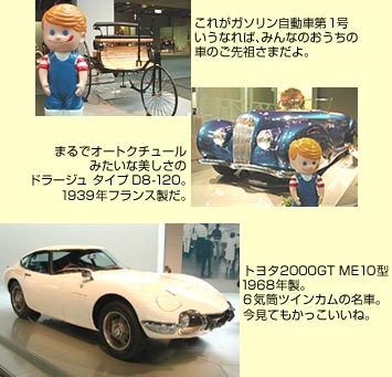 三河の旅で最後に訪ねたのは来年開催される愛知万博長久手会場にほど近い、トヨタ博物館。ボクはずっーとこの博物館に来たかったんだ。だって大好きな世界中の自動車がいっぱい展示されているんだもん!