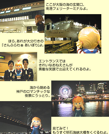 明石海峡大橋もバッチリ見たし、そろそろ眠くなってきちゃった。あら!もうこんな時間。明日からの旅に備えて、ぐっすり眠らなくちゃ。おやすみなさ〜い。