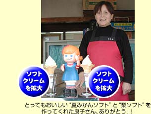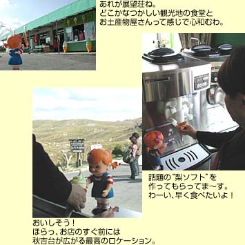 展望台のすぐ横にあるお店が展望荘。このお店が今回のひとつめの目的。山口の特産品夏みかんと、まさにご当地の秋芳町で有名な秋芳梨にちなんだソフトクリームが味わえるのよ!