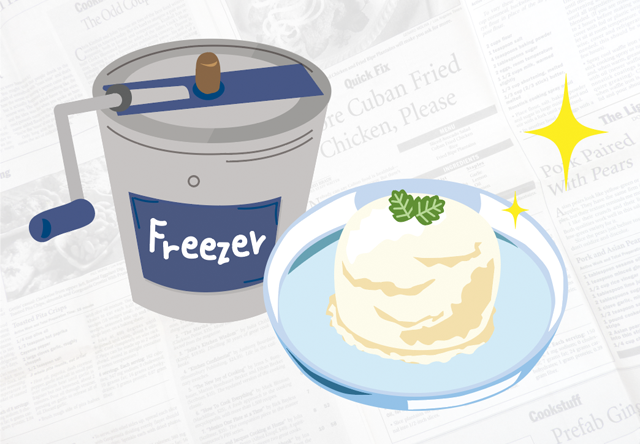 雪でミルクを凍らせて食べていた古代から、冷やす技術の発展により、現在のアイスクリームに近い、原型が生まれたのが17世紀終わり頃のヨーロッパ。イタリアの菓子職人が作った、卵黄やホイップクリームを用いた乳成分たっぷりの氷菓子がそれとされています。初期のアイスクリームは、まだまだ庶民の手には届かない贅沢品とされていましたが、それから約160年後、1846年のアメリカで、主婦のナンシー・ジョンソンが、樽の中に氷と塩を入れて冷却する「手回し式アイスクリームフリーザー」を発明します。