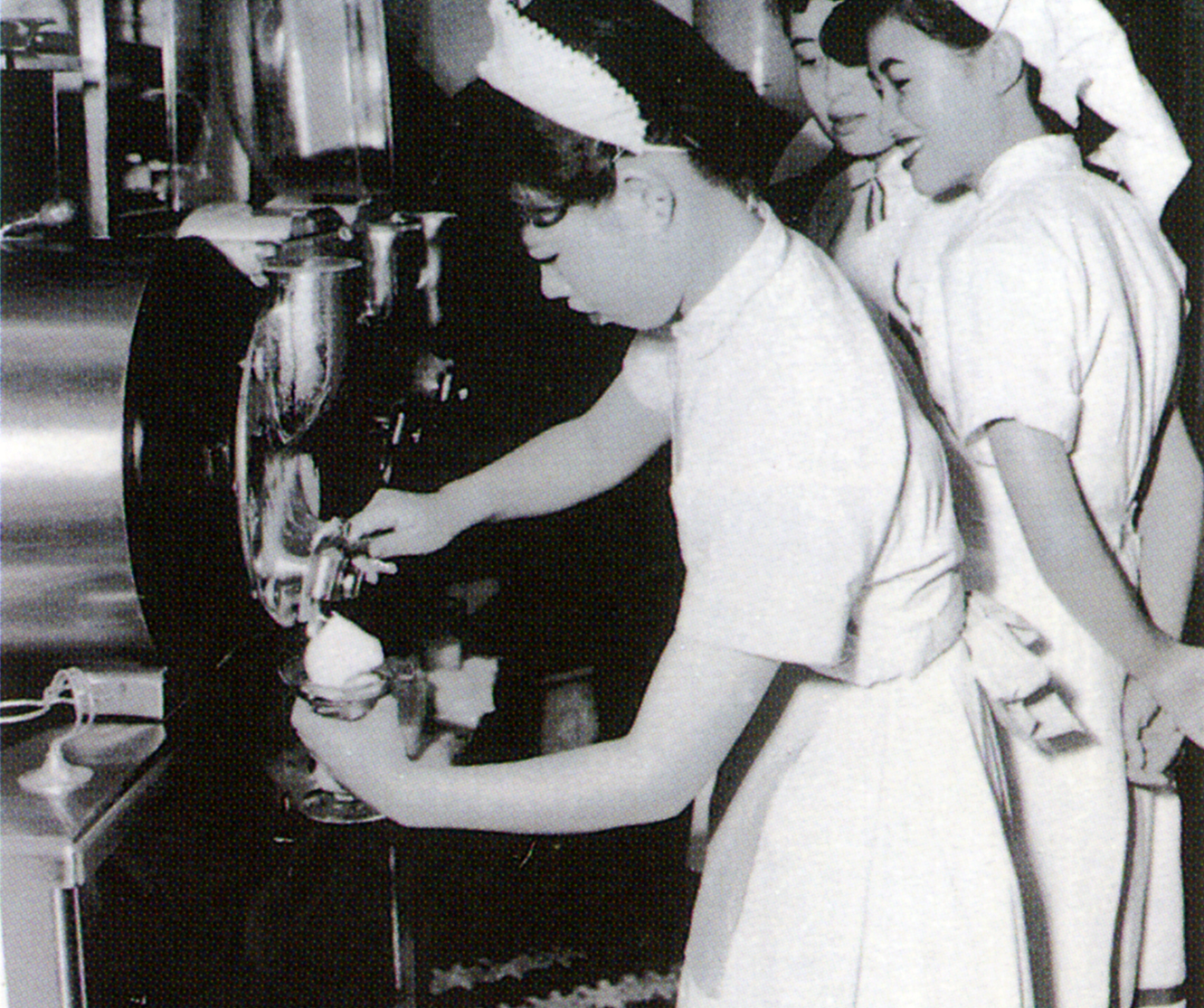 そして、1951年。ソフトクリームがついに日本に上陸。日世の創業者である田中がアメリカでソフトクリームが流行しているとの情報をキャッチし、日本国内でも販売することを考案。戦後の厳しい輸入規制のなか、アメリカからマシンを10台輸入することに成功し、ソフトクリームを初めて日本に紹介しました。