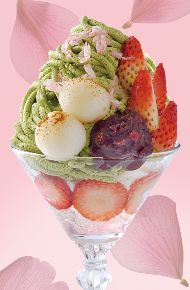 抹茶と苺に桜薫る、白玉添えた春色の上品な和風パルフェ「抹茶といちごの和スイーツ」が新登場!